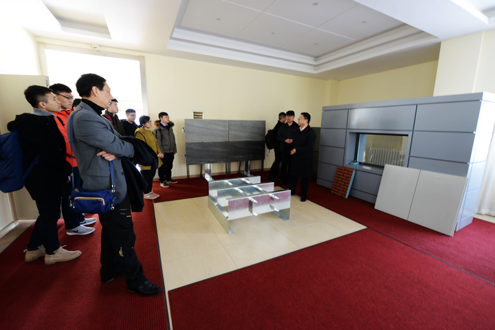 在揭牌儀式前,洪長禧總經(jīng)理及公司領導首先陪同客人參觀了公司生產(chǎn)基地及產(chǎn)品展廳,師生們對我公司先進的裝備及產(chǎn)品贊不絕口,尤其是裝配式建筑展品給師生們留下深刻的印象。
