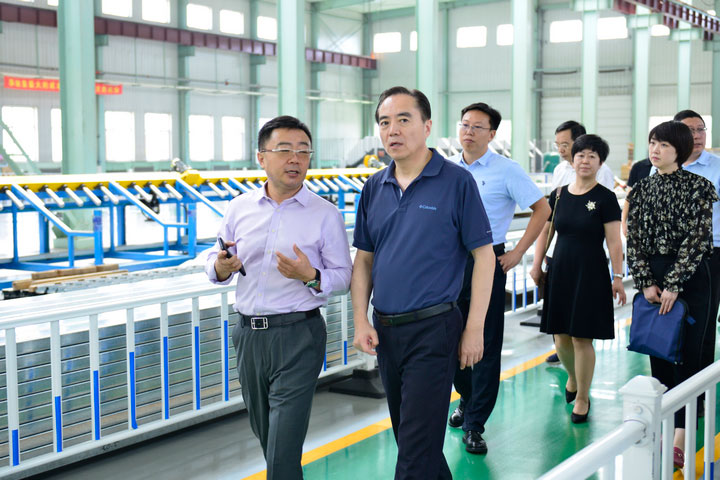 8月31日上午,市委組織部王義東副部長(副廳長級)、市委組織部人才工作三處周宏波處長、鄧喆副處長會同市城鄉(xiāng)建設局二級巡視員隋明悅、市城鄉(xiāng)建設局現(xiàn)代建筑產(chǎn)業(yè)發(fā)展部部長雷云霞、主任科員武凱華等蒞臨我公司進行調(diào)研。在總經(jīng)理洪長禧、常務副總經(jīng)理趙丹及副總經(jīng)理吳龍的陪同下調(diào)研組一行參觀了公司生產(chǎn)車間、裝備及樣品展廳,各位領導對我公司的產(chǎn)品和綜合實力給予很高的評價。