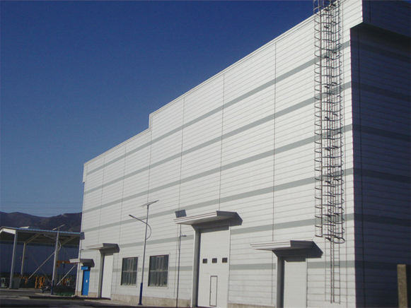 該項目建筑面積23萬㎡,由29個單體廠房構成,跨度24~27m,100t吊車梁,主鋼結構2.2萬噸,有規(guī)模大、單體多、運輸距離遠、交叉作業(yè)多、現(xiàn)場環(huán)境惡劣等特點。太原項目部協(xié)同生產(chǎn)技術人員,對470屋面板生產(chǎn)的操作平臺等安裝設備及工裝進行了技術改造,極大提高生產(chǎn)效率,同時降低了設備移動的運輸成本。通過公司各部門的密切合作,該項目順利保質保量按期完工。