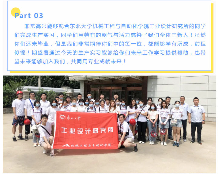 歡迎東北大學(xué)機械工程與自動化學(xué)院工業(yè)設(shè)計研究所同學(xué)來我司生產(chǎn)實習(xí)