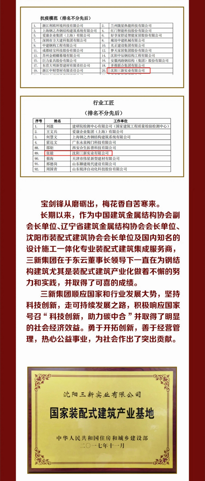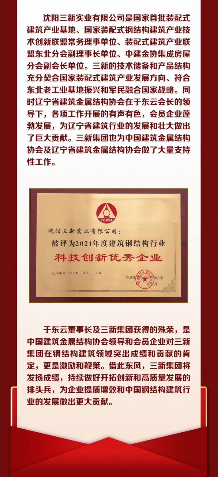 產(chǎn)業(yè)報國 不辱使命——“中國建筑金屬結(jié)構(gòu)協(xié)會”四十周年華誕,三新集團榮獲多項殊榮