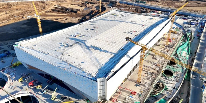 秋碧如洗的渾河之畔,“云上冰玉” 正以出水芙蓉之姿亭亭玉立。這座總建筑面積達(dá) 26.38 萬平方米的冰上巨構(gòu),將 “城市與自然共生” 的理念凝于鋼筋鐵骨,其中 13.57 萬平方米的國家速滑館更以流線型弧面勾勒出渾河的靈動 —— 空中俯瞰,三新實業(yè)打造的屋面恰似鎏金鳳冠,在北國陽光下流轉(zhuǎn)著技術(shù)與藝術(shù)交融的光芒。