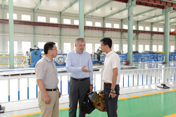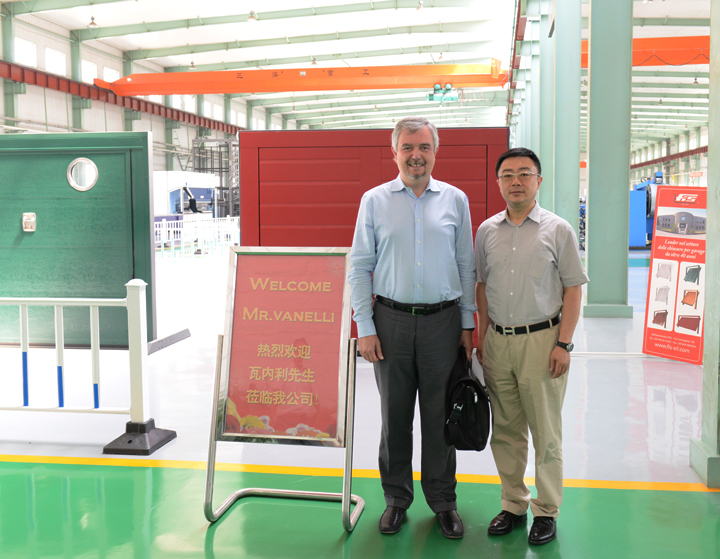 2015710日,應公司邀請,世界電梯領跑者意大利沃迪克集團公司高管瓦內利先生訪問我公司。瓦內利先生在公司總經理洪長禧先生的陪同下考察了公司柔性金屬板材生產車間,客人對公司先進的生產線及其生產管理由衷的滿意。之后于東云董事長與瓦內利先生進行了親切友好的會談。