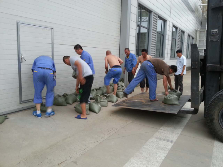 7月20日晚,為應(yīng)對當晚的強降雨帶來的洪水威脅,公司啟動了防洪應(yīng)急預(yù)案。公司組織生產(chǎn)基地生產(chǎn)技術(shù)部大部分員工及工程部、綜合管理部和供應(yīng)儲運部部分員工,進行了防汛抗洪的準備工作。當晚22時左右,在大家的共同努力下,防汛工事全部構(gòu)筑完成,使公司財產(chǎn)免受洪水威脅。在此次防汛抗洪行動中,所有人員顧全大局、視廠為家、不畏酷暑及蚊蟲叮咬,盡職盡責,圓滿完成任務(wù)。為弘揚這種精神,公司決定對參加此次防汛抗洪的人員給予通報表彰并發(fā)獎金。